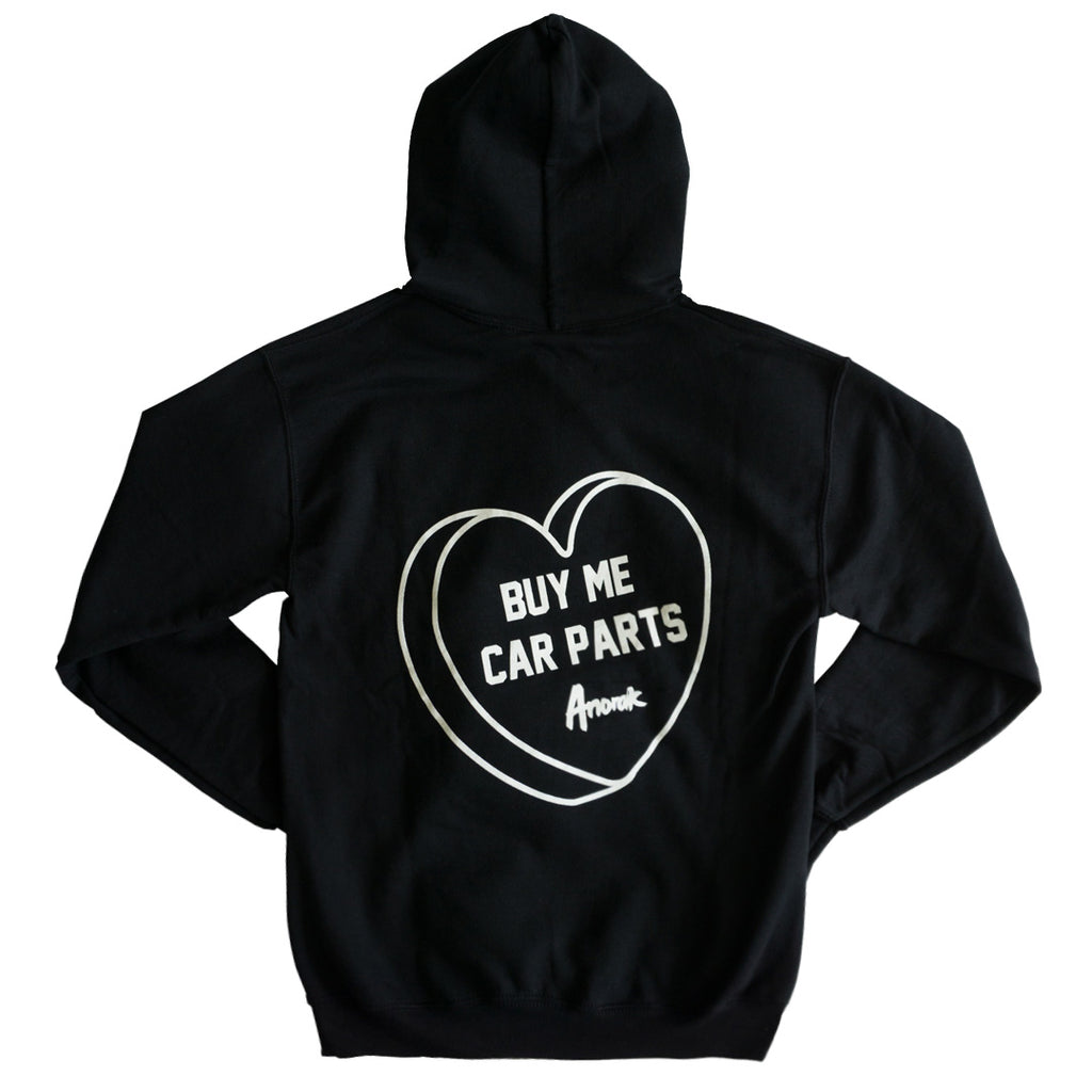 Buy Me Car Parts Hoodie (Black) $ 65.00 S - $ 65.00 M - $ 65.00 L - $ 65.00 XL - $ 65.00 Quantity This variant is currently sold out Kick it at your favorite Summer night car meet in our cozy Buy Me Car Parts hoodie. Throw this hoodie on, start up the engine, snag some bubble tea, and go enjoy that cool Summer night cruise. Full-Back "Buy Me Car Parts" Candy Heart Graphic w/"Forever Modified" front left chest design. Unisex sizing (yup that means you too gentlemen) / 50/50 Blend / Black